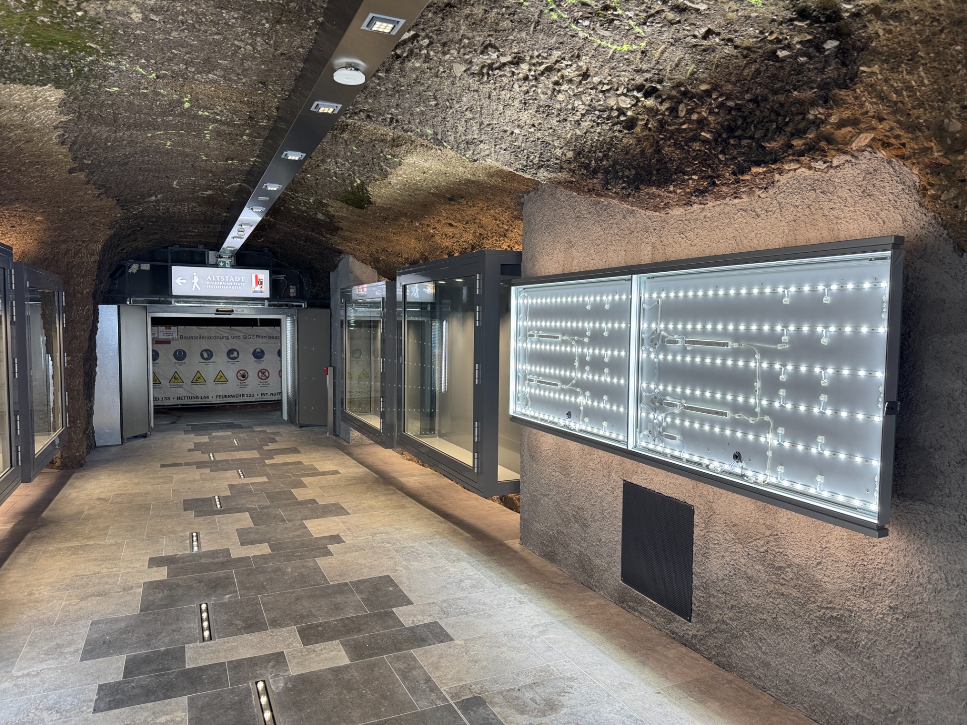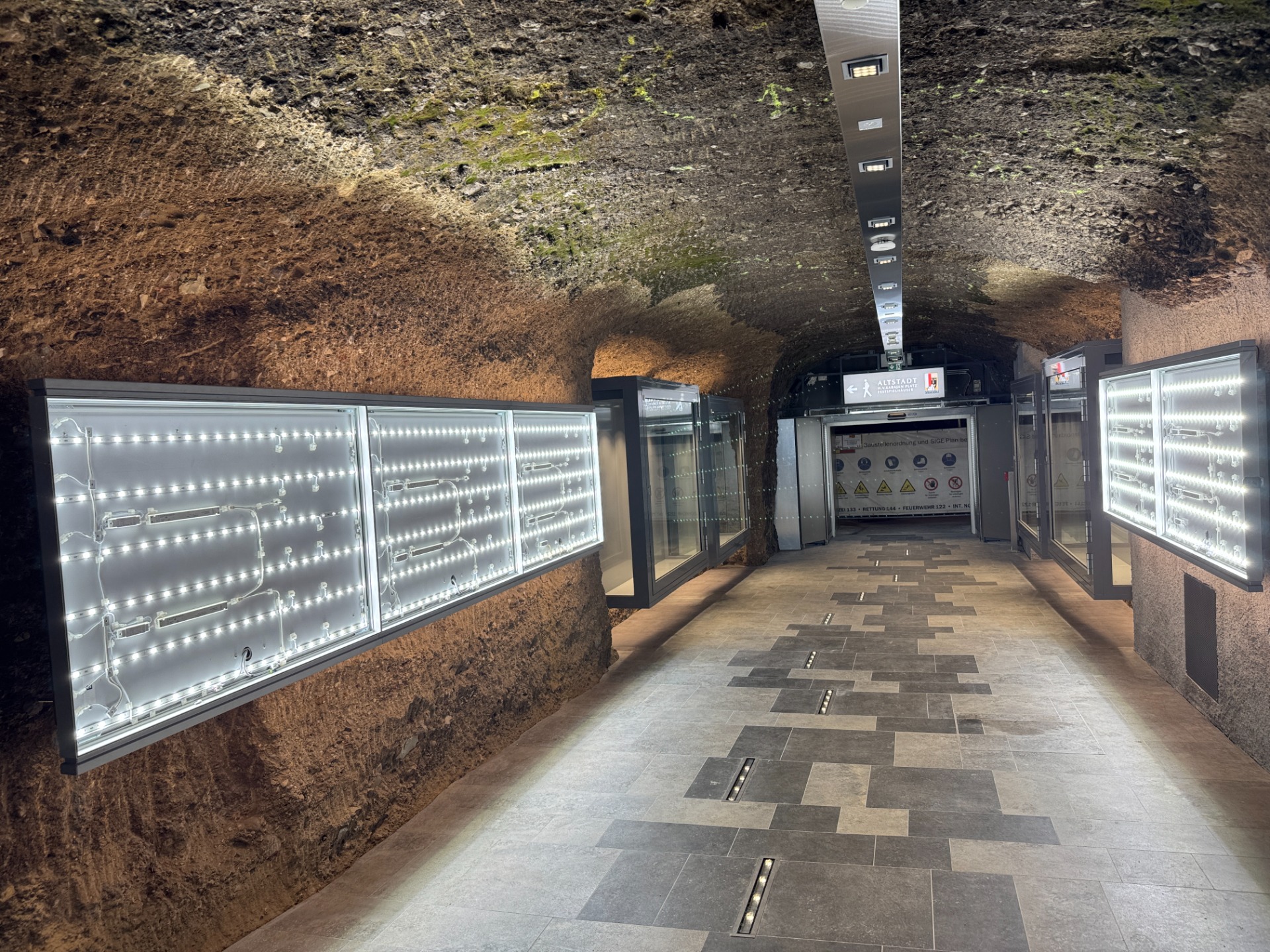 Montage eines 1500x1000 mm großen LED-Rahmen mit individueller bedruckbarer Textilwerbefläche in Gruppen montiert, dimmbar und mittels DALI-Steuerung ansprechbar.