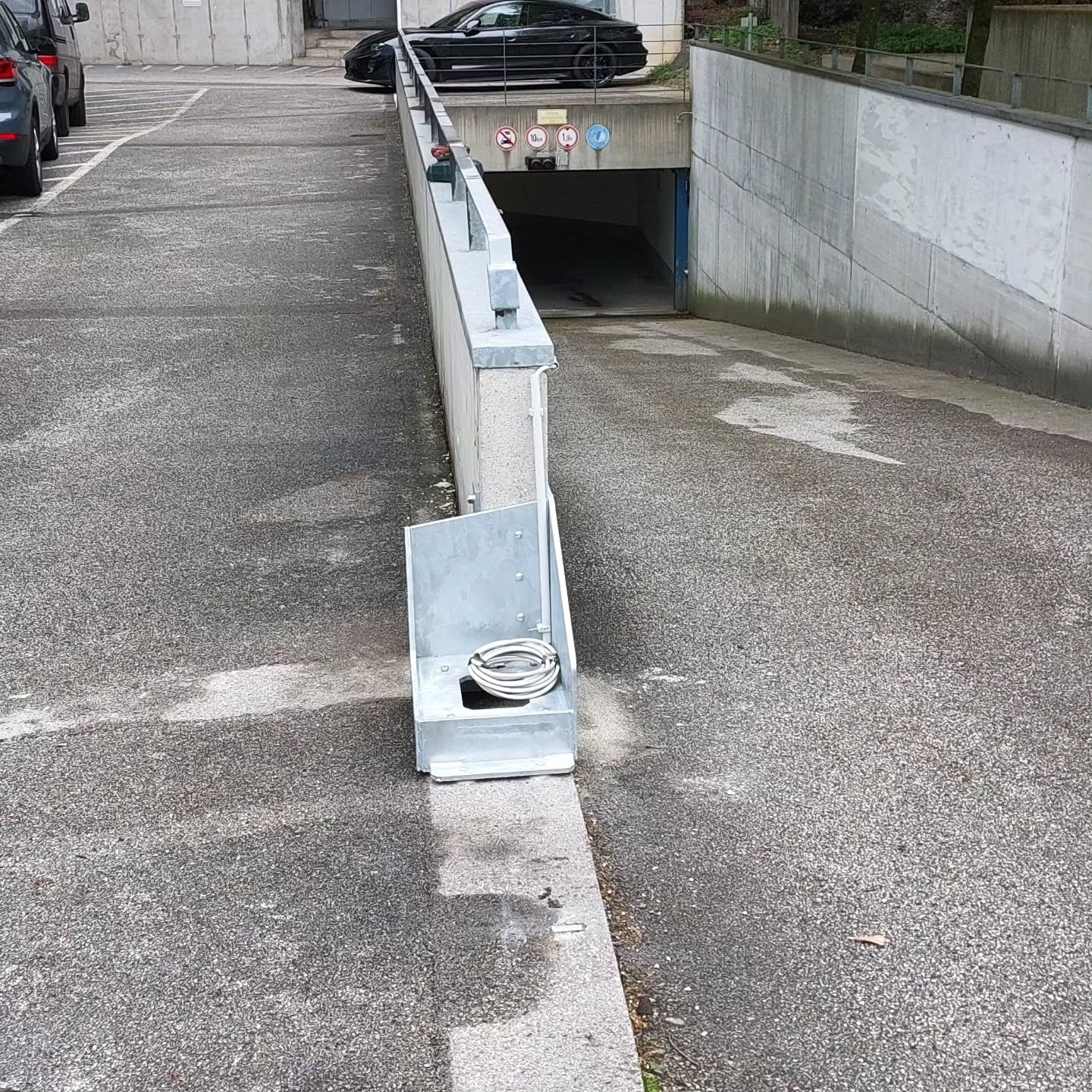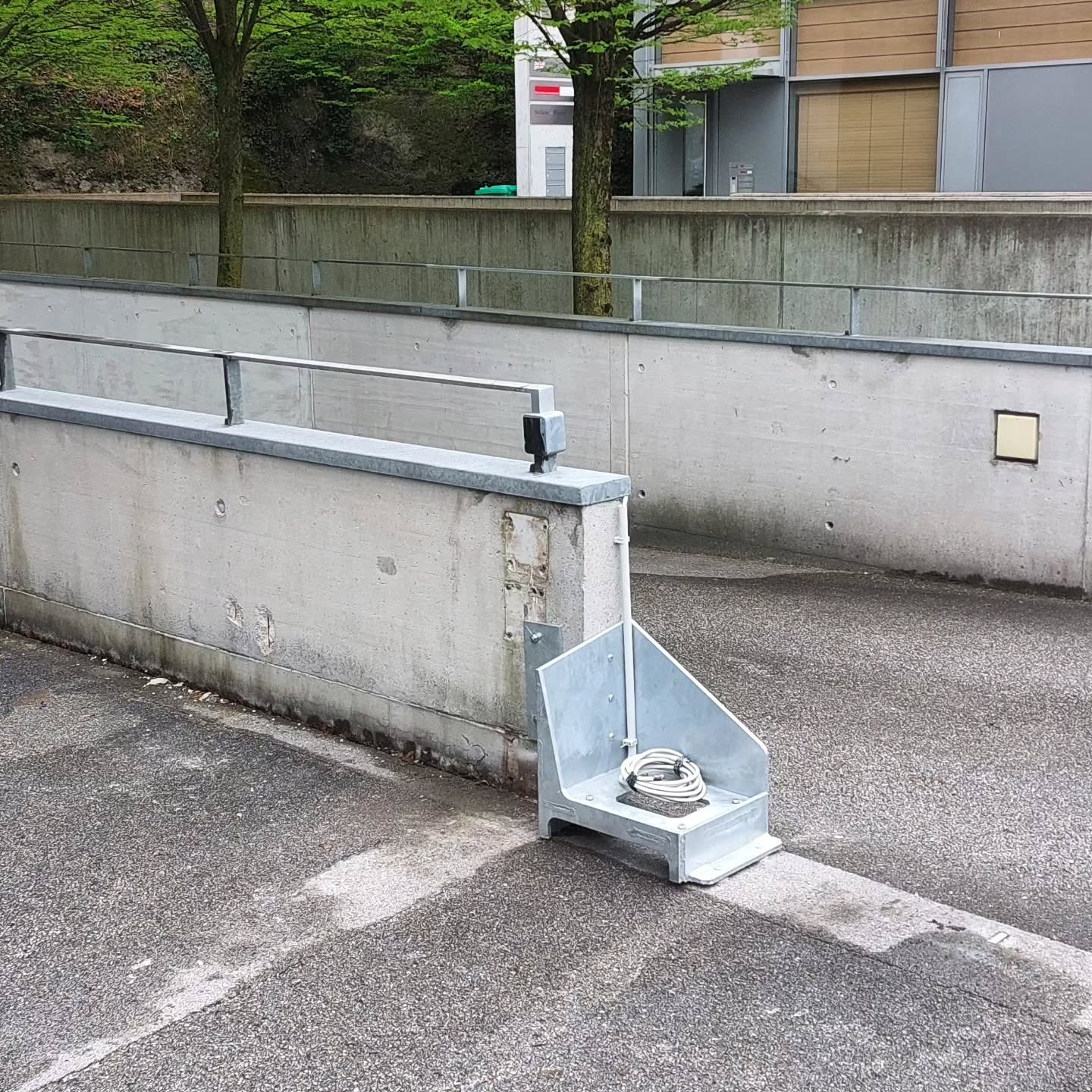 Das freitragende Fundament wurde an eine Betonwand angeschlossen und exakt für die Montage einer S&B-Schrankenanlage ausgerichtet.